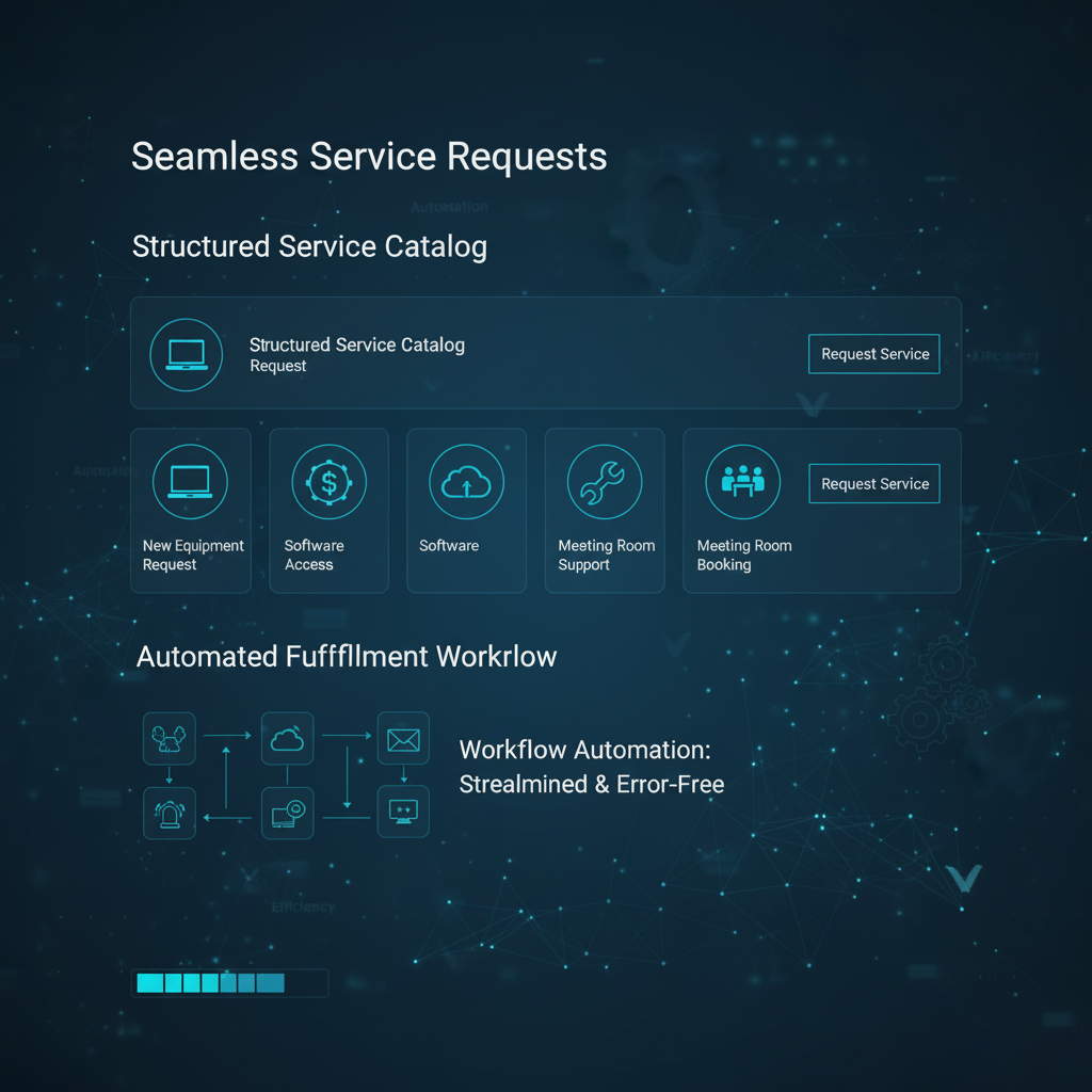Empower employees to quickly locate and request the precise services they need through a structured service catalog. Streamline and automate the fulfillment workflow to enhance efficiency and reduce errors.