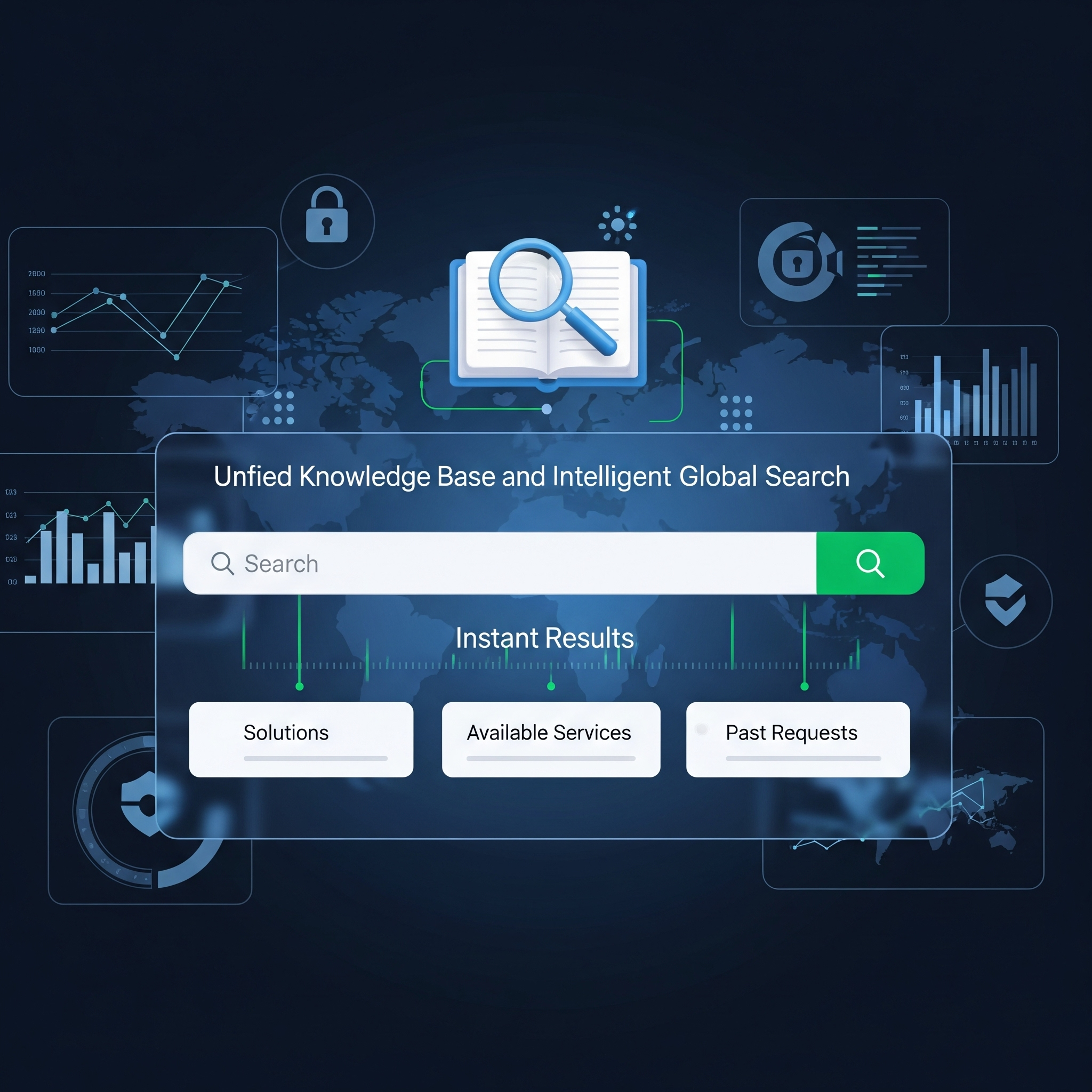 Minimize support effort by empowering users to quickly find solutions through a unified knowledge base, explore available services, and review past requests using our intelligent global search.